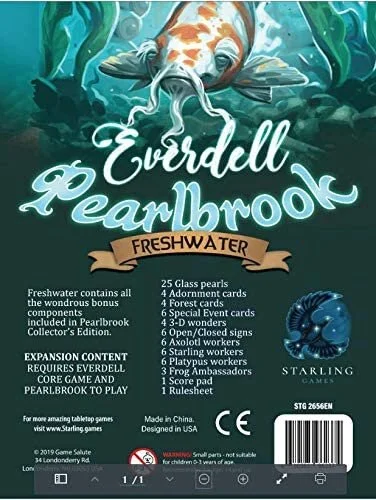 Freshwater adds to your game every component included in the Collector's Edition of Everdell Pearlbrook.